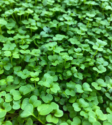 Mélange savoureux de Micropousses Doux avec Brocoli Raab, Trèfle Cramoisi et Chou-Rave Pourpre. Croquant, Doux, Sucré, au goût Frais et Super Nutritif.